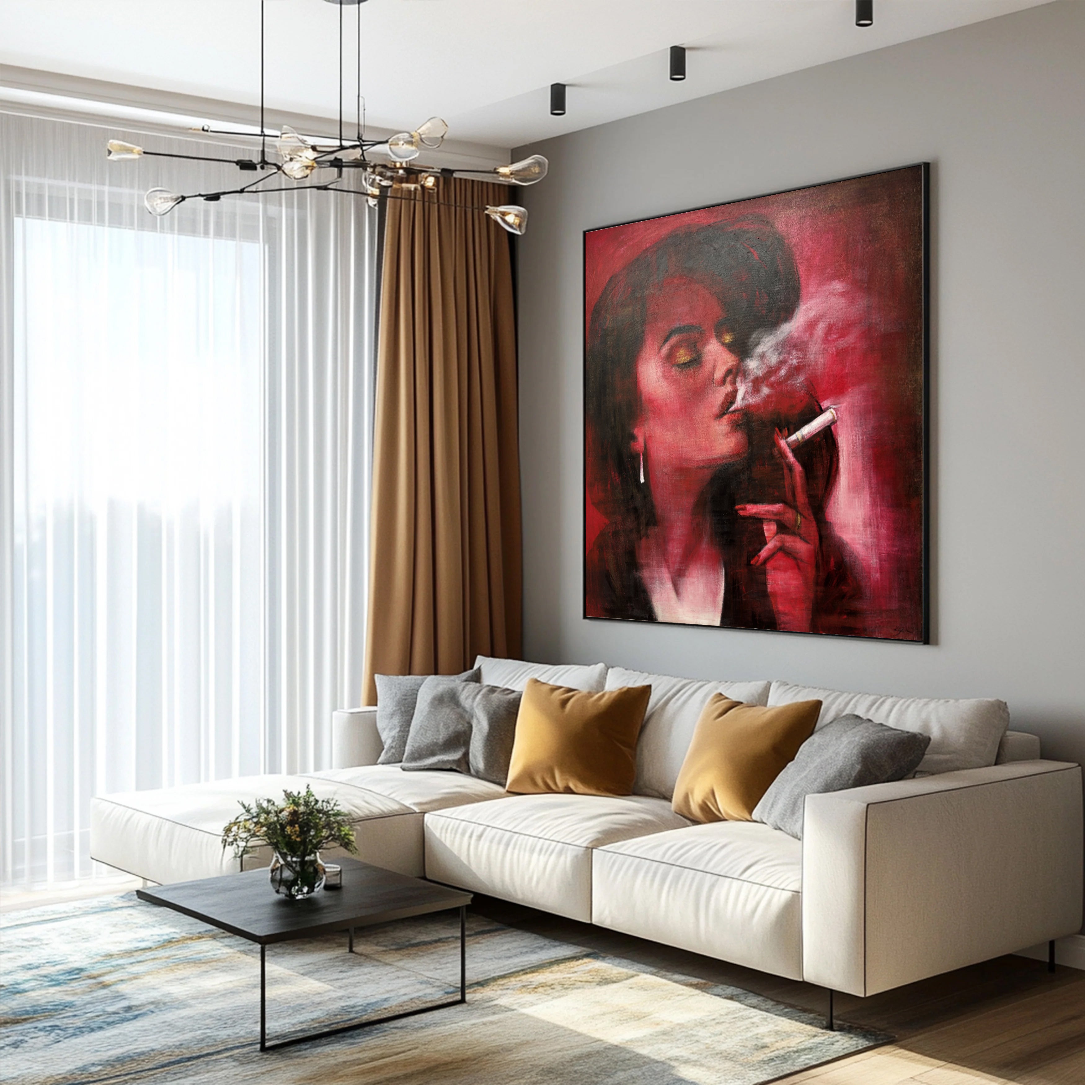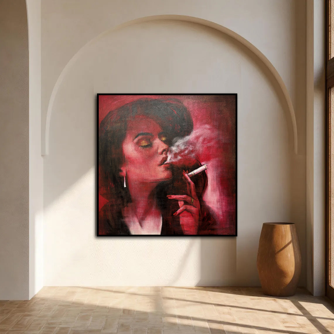 Smoking Woman Red Portrait Modern Glam Wall Art Bold Expressionist Paintings on Canvas Statement Wall Decor for Living Room | VELVET VICE | Trend Gallery Art Great Britain – Trendgallery.co.uk