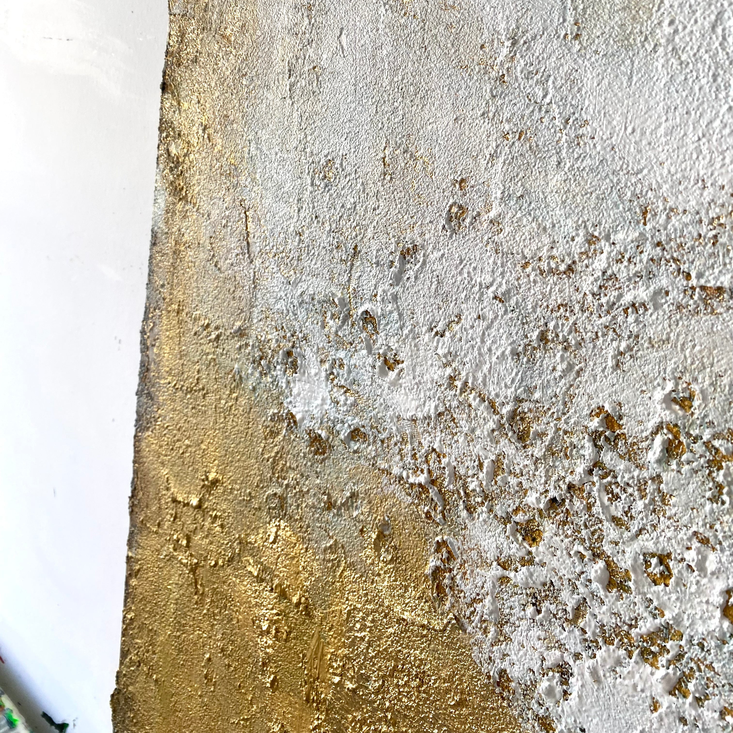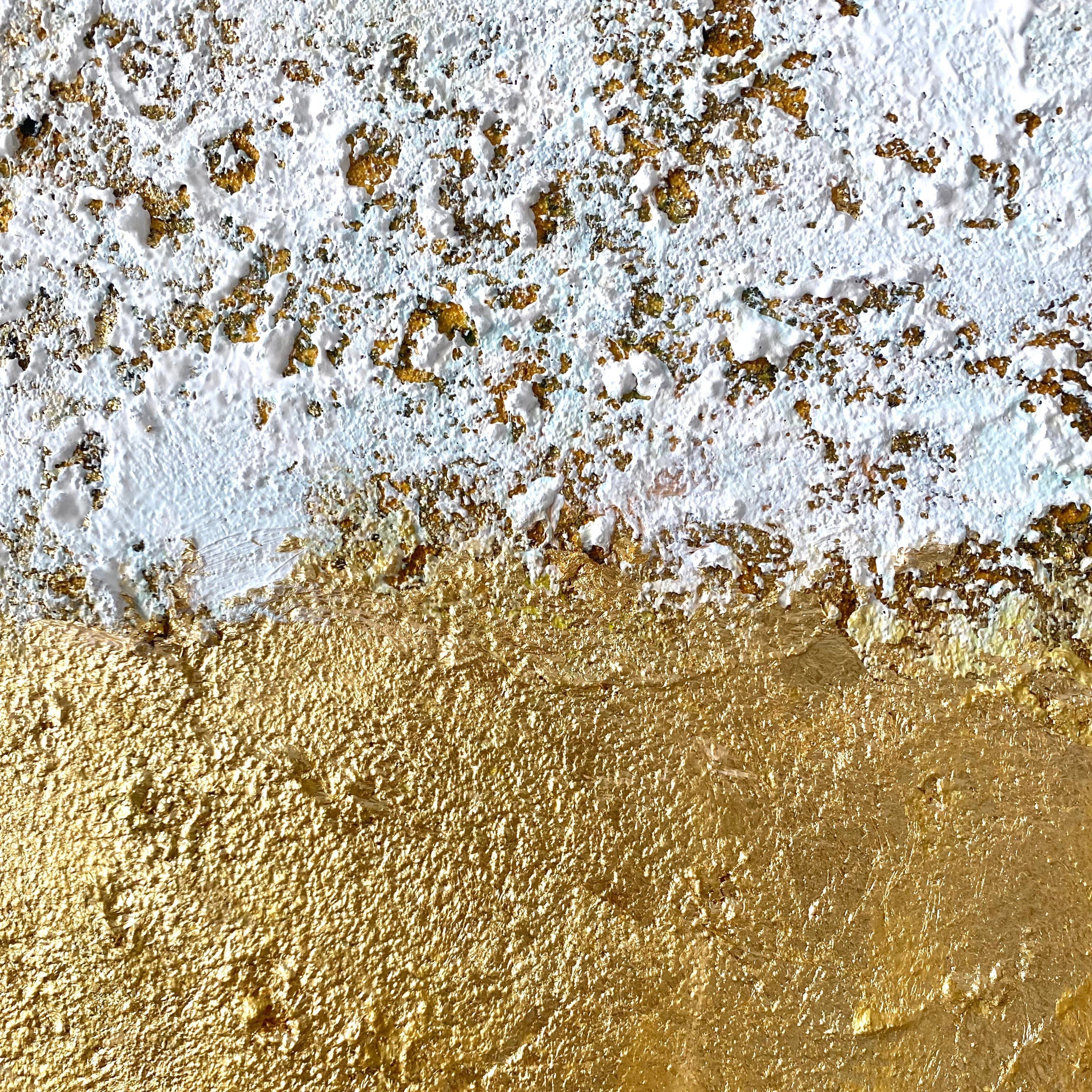 Handmade textured abstract in white and metallic gold, this palette-knife canvas brings luxe glow and calming minimalism to any room. Rich impasto and subtle patina catch the light, creating a “Gilded Horizon” effect that elevates modern, neutral interiors. Ready to hang, framed, and available large—perfect over a sofa, bed or entry. Premium archival paints ensure long-lasting color and sheen. Style it with wood, linen and brass for a warm, sophisticated focal point.