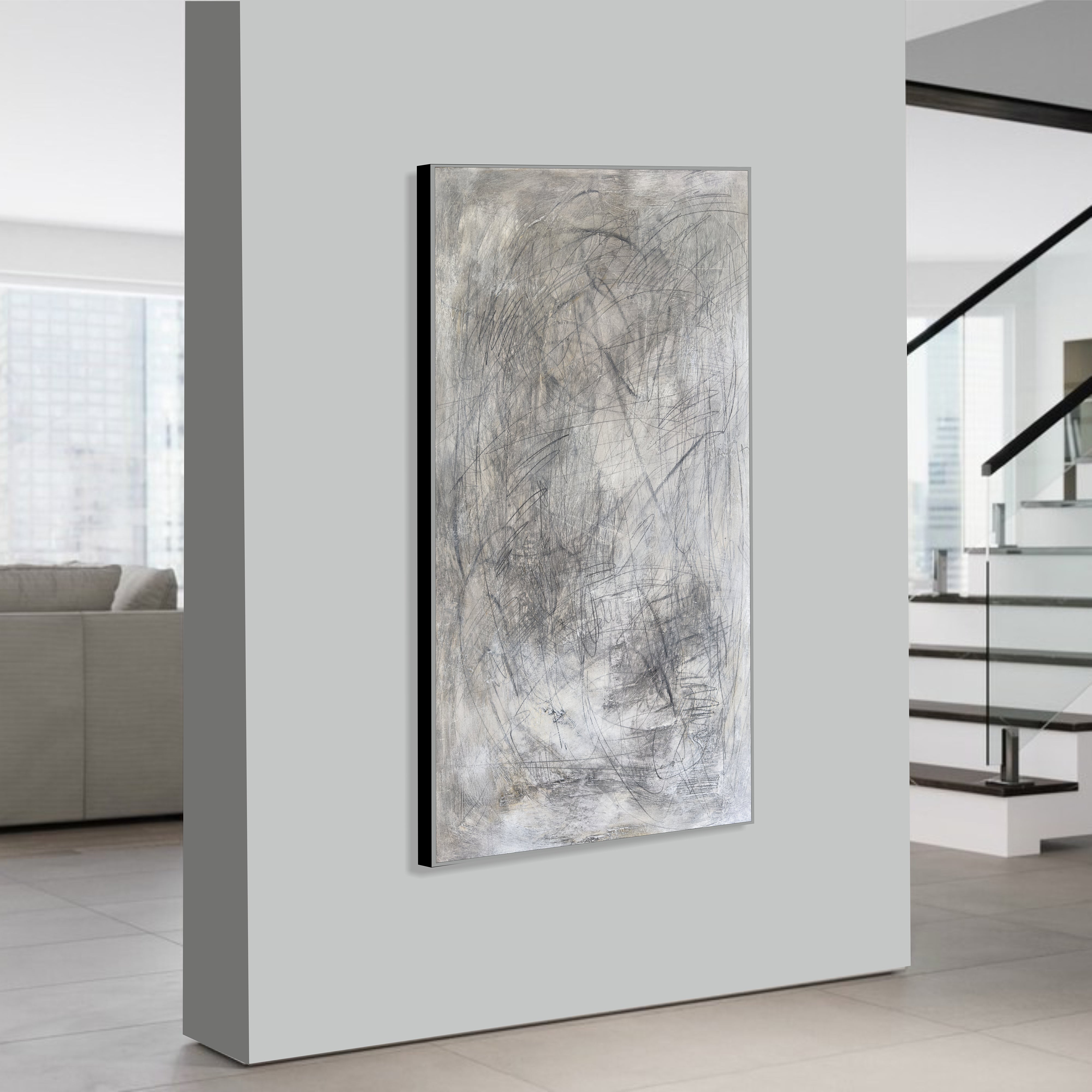 Elevate your living space with this minimalist abstract painting, featuring a textured interplay of gray and white tones. The hand-painted design showcases chaotic yet calming linear strokes, creating a perfect blend of modern expressionism and subtle elegance. Ideal for contemporary or minimalist interiors, this framed canvas brings a unique, sophisticated touch to living rooms, bedrooms, or offices. Crafted with premium materials, this artwork offers a timeless and versatile accent for any space.