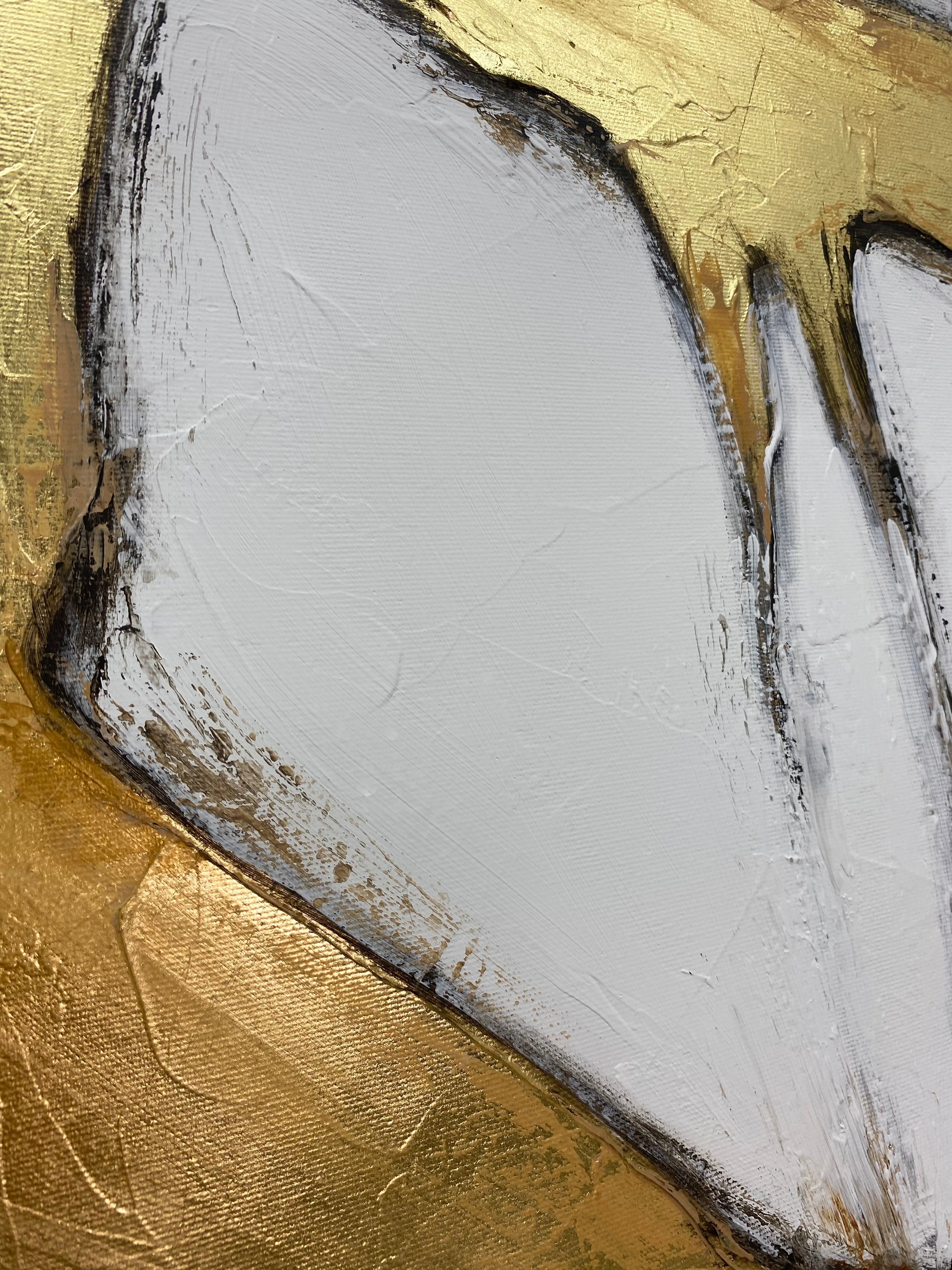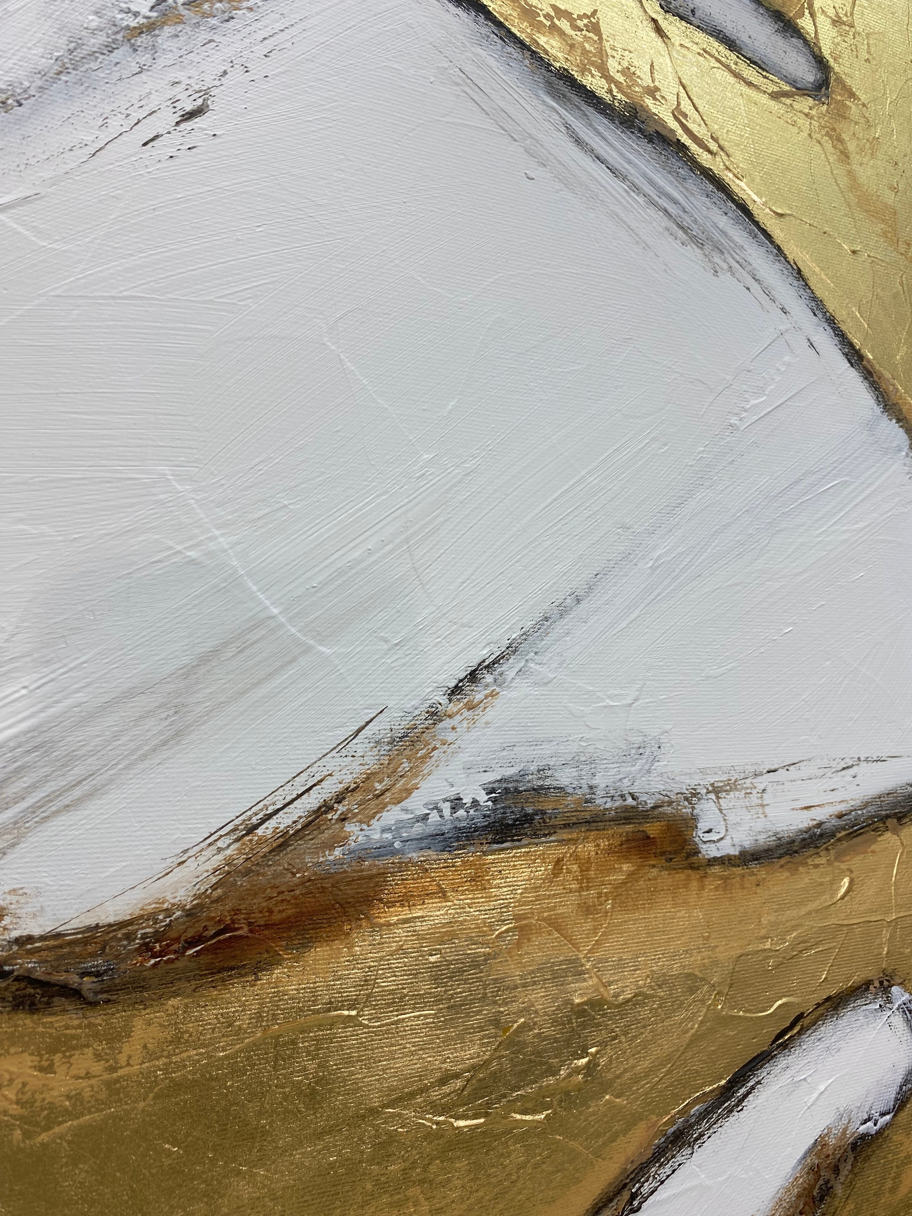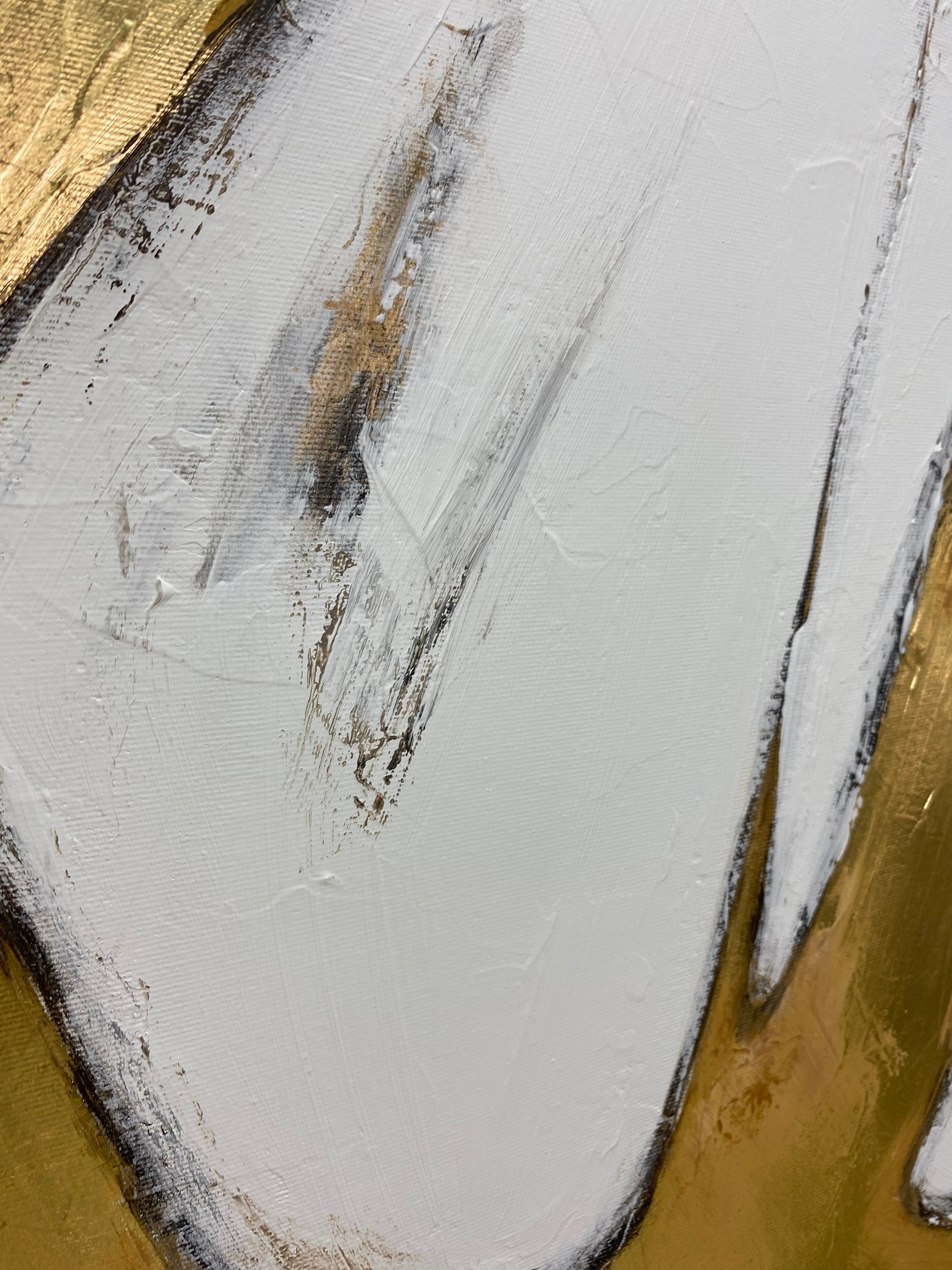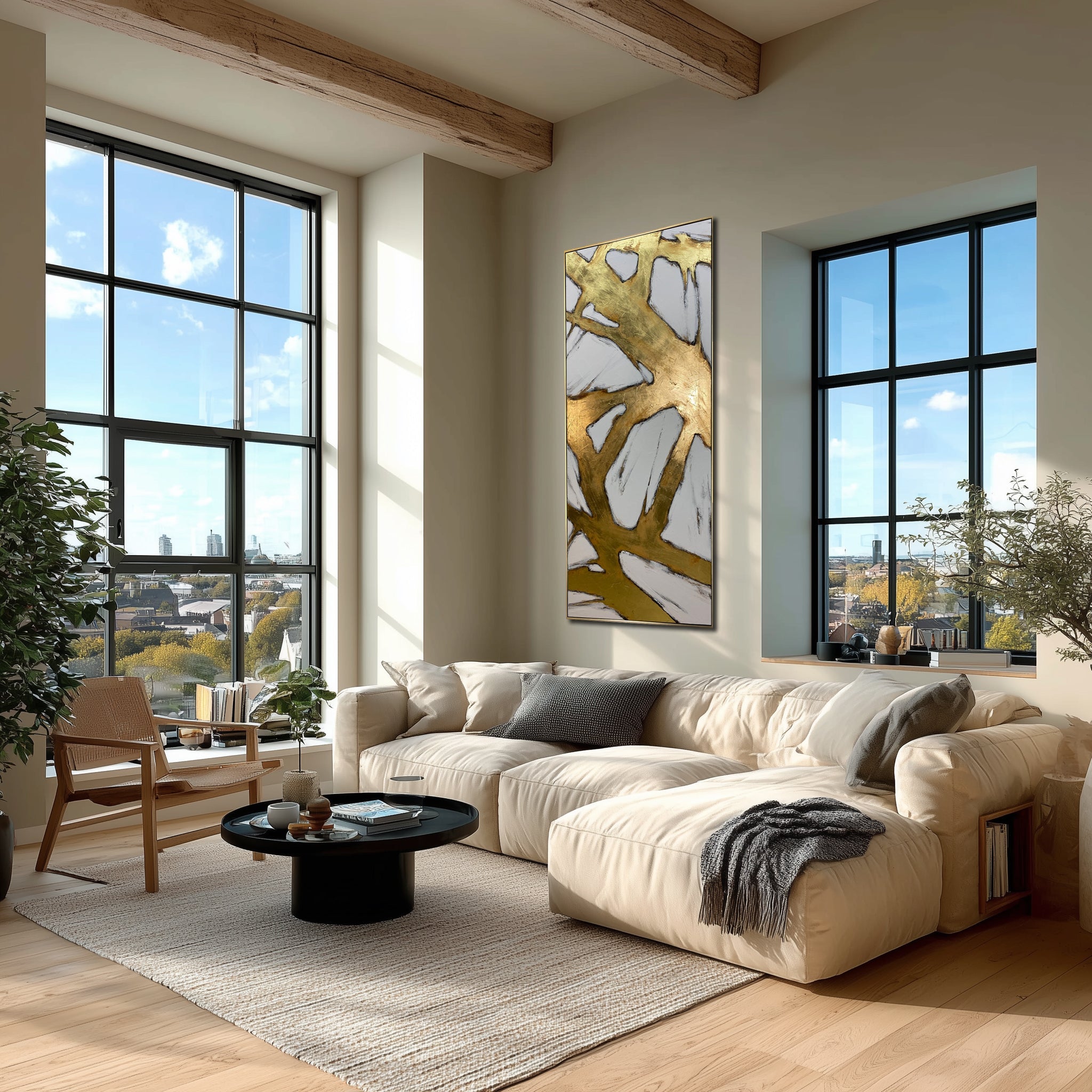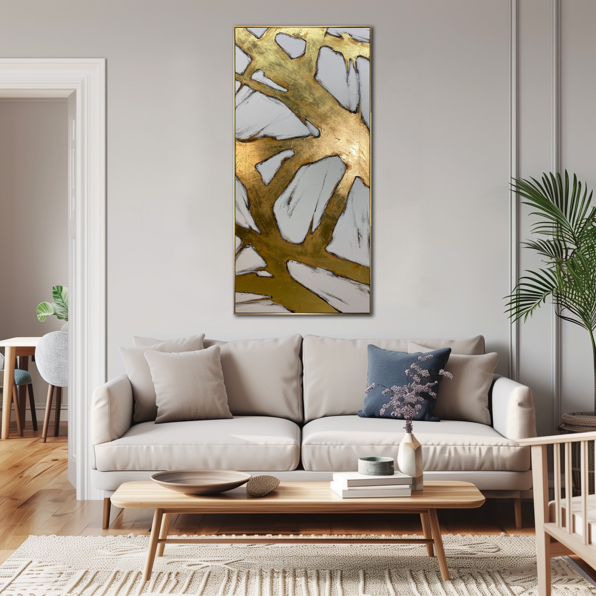 White gold abstract painting, minimalist vertical wall art, textured original oil canvas, home office decor | GOLDEN GRIDWORK | Trend Gallery Art Great Britain – Trendgallery.co.uk
